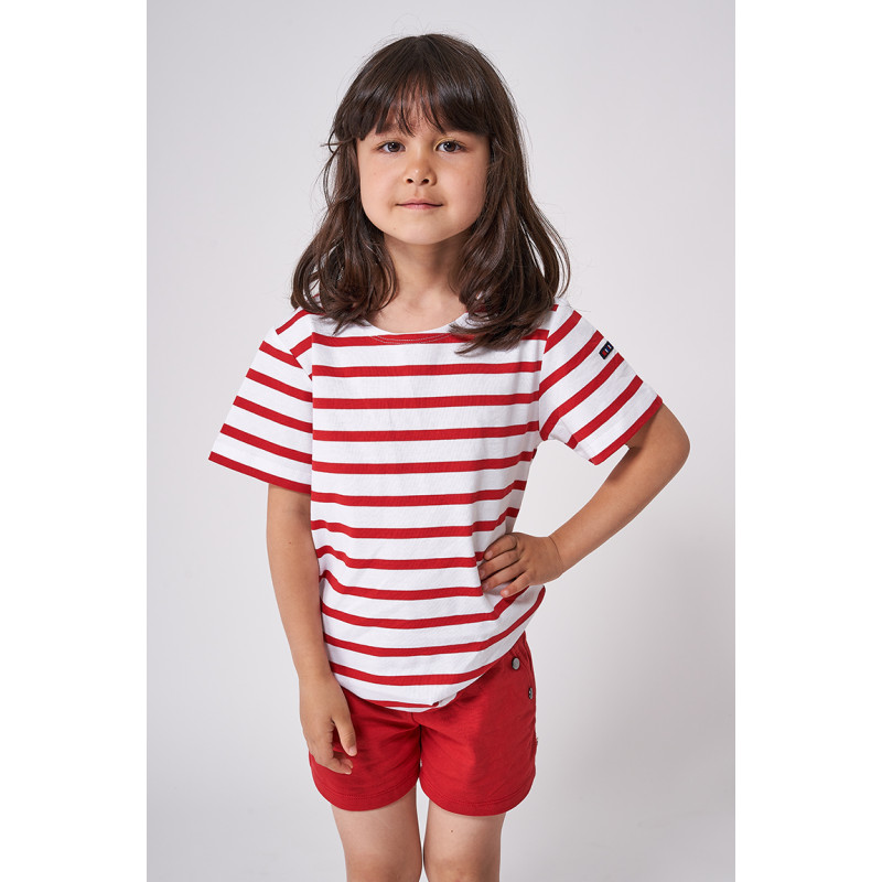 N2208 Camiseta Marsellesa manga corta de rayas Blanco/Cereza