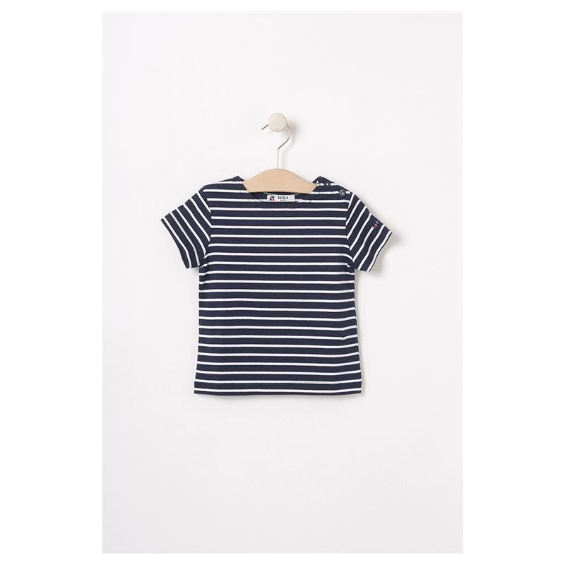 B2376 Camiseta básica rayas y botones en el hombro Marino/Blanco