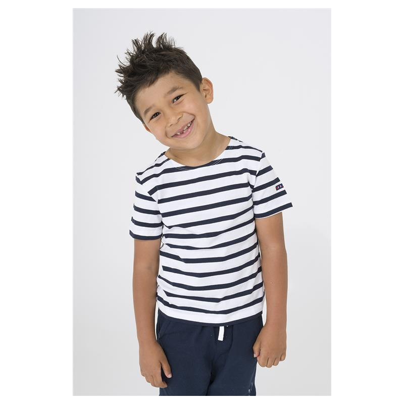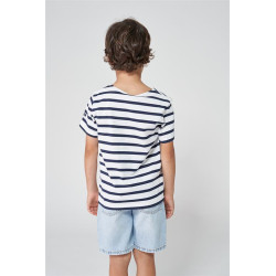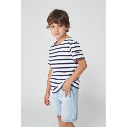 N2208 Camiseta Marsellesa manga corta de rayas Blanco/Marino