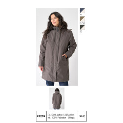C3209 Abrigo de mujer impermeable con borreguito interior Gris