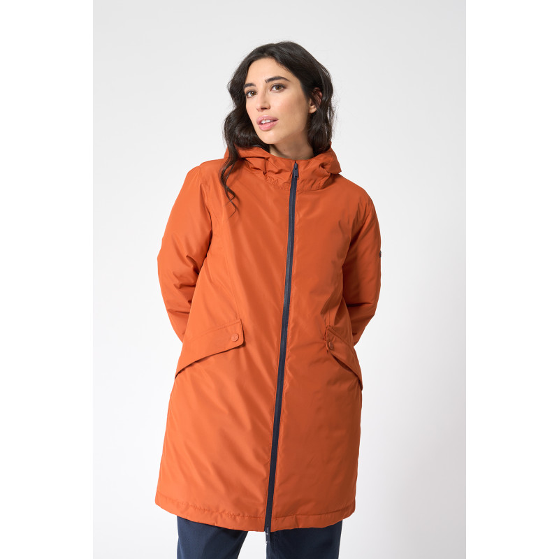 Este abrigo impermeable acolchado 100% impermeable de mujer, te acompañará en los días más fríos del invierno. Confeccionado en tejido de poliéster reciclado, cuenta con una capa aislante transpirable y sin plumas para ayudar con la ventilación en las largas caminatas. Tiene bolsillos plastrón con solapa y cremalleras impermeables en los laterales.