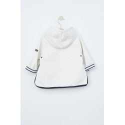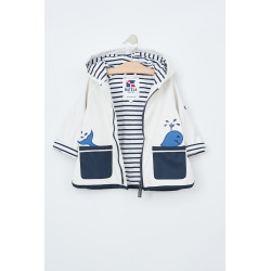 Impermeable náutico con forro de algodón de la marca Batela. No se ha escatimado en detalles en su confección y calidad. Con toques infantiles pero sin renunciar al estilo náutico que caracteriza a la marca. Este impermeable te permitirá que tu bebé disfrute de los días desapacibles para que la lluvia o el viento no os dejen en casa y puedan disfrutar.