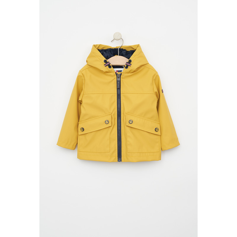 Chubasquero o impermeable de bebe fabricado en poliuretano con forro interior de pelo.