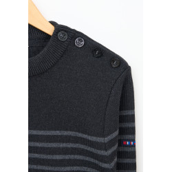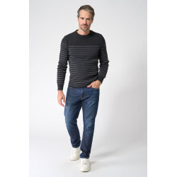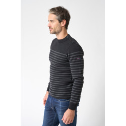 Clásico jersey marinero de hombre de la marca Batela. El modelo “Bretón”, diseñado con cenefa en puños y cadera, con manga larga y cuello redondo.